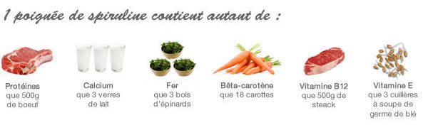La spiruline contient une quantité incroyable de protéines, d'acides aminés, de minéraux, de vitamines, d'enzymes....